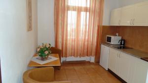 Vybavení: Luxusně vybavený moderní apartmán se vstupní halou s kuchyní (chladnička, minibar nádobí, sklokeramická varná deska, varná konvice, mikrovlnná trouba, kávovar), jídelní kout. Koupelna, sprchový kout, vysoušeč vlasů, WC. Pokoj - široké dvojlůžko, sedací souprava, digitální TV. Možnost praní v pračce. Možné snídaně na objednávku.