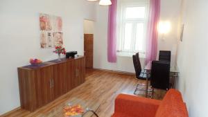 Vybavení: Luxusně vybavený moderní apartmán se vstupní halou, s kuchyní (chladnička, minibar, nádobí, sklokeramická varná deska, varná konvice, mikrovlnná trouba, kávovar). Koupelna - sprchový kout, vysoušeč vlasů, osušky. WC. Ložnice s širokým dvojlůžkem, digitální TV. Obývací pokoj - sedací rozkládací souprava, jídelní kout. Možné snídaně na objednávku s donáškou na apartmán.